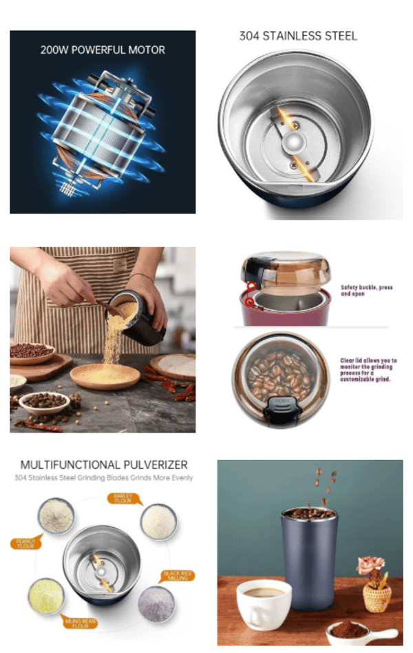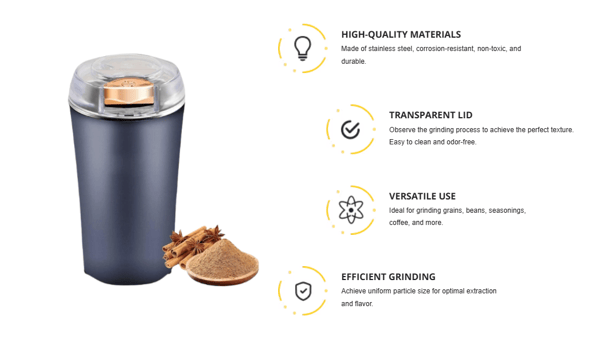 Experience the art of grinding with our powerful electric mini multi-purpose grinder, meticulously designed to deliver perfectly grounded spices, coffee beans and other materials in a matter of seconds. Boasting a modern, sleek aesthetic and robust construction, this grinder is a stylish and practical addition to any kitchen. Complete with a convenient power cord and an easy-to-follow user manual, even beginners can master the perfect grind with ease. Available in a range of attractive colors to match your kitchen decor.